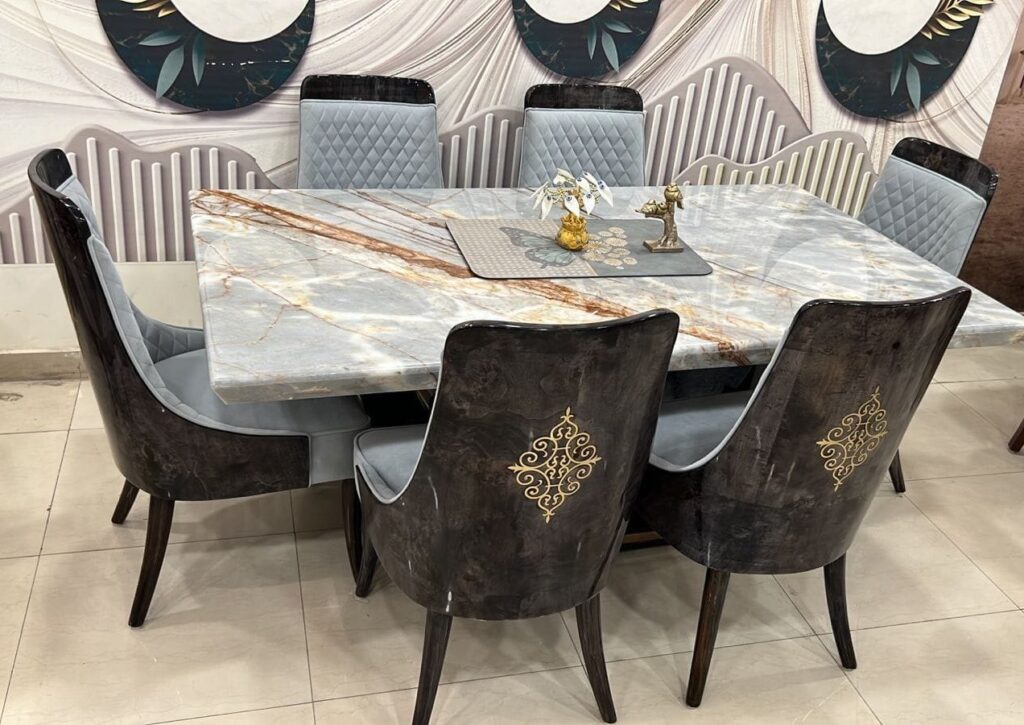 Marble is a more traditional choice for dining tables and is often used in kitchens. Gramite is popular because it has a natural look and is easier to maintain. It also requires less mantainance than marble, which can be stained easily if not cared for properly.
